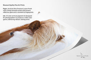 All prints are individually produced on archival, ultra premium luster paper with a finely textured surface that lessens reflective glare and is resistant to fingerprints. The paper has a 10-mil thickness eliminating any concern of warping and is designed to produce vivid, rich colors.