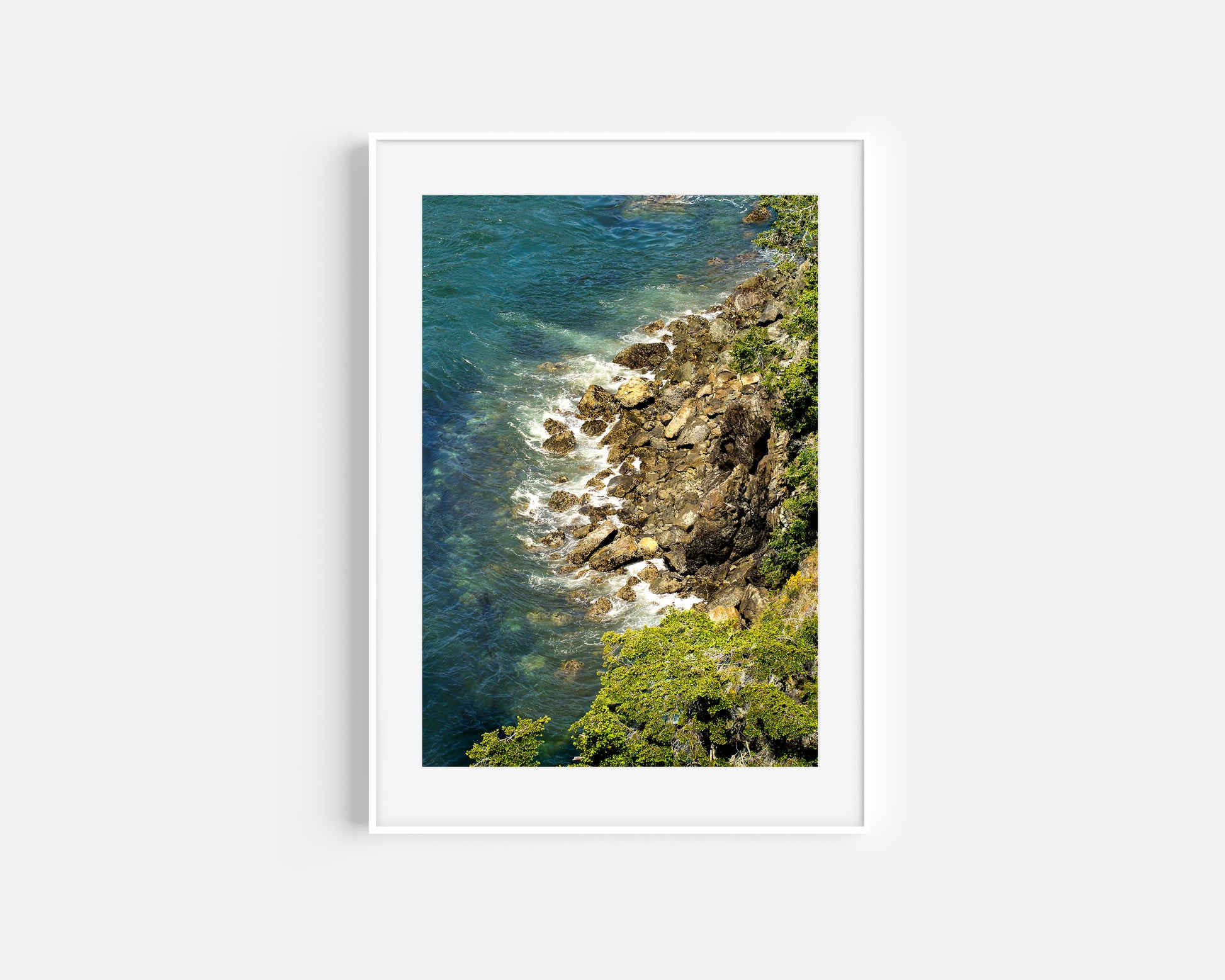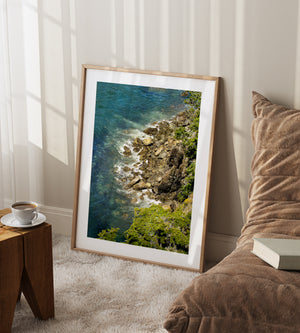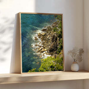 Be spoiled by the beauty of the Pacific Northwest, looking down from a forested cliff as tidepools are being refilled by the gorgeous green-blue waters of the Puget Sound. This image is bathed in the quintessential PNW color palette with so much detail you will even be able to spot the tenacious barnacles on the rocks below.