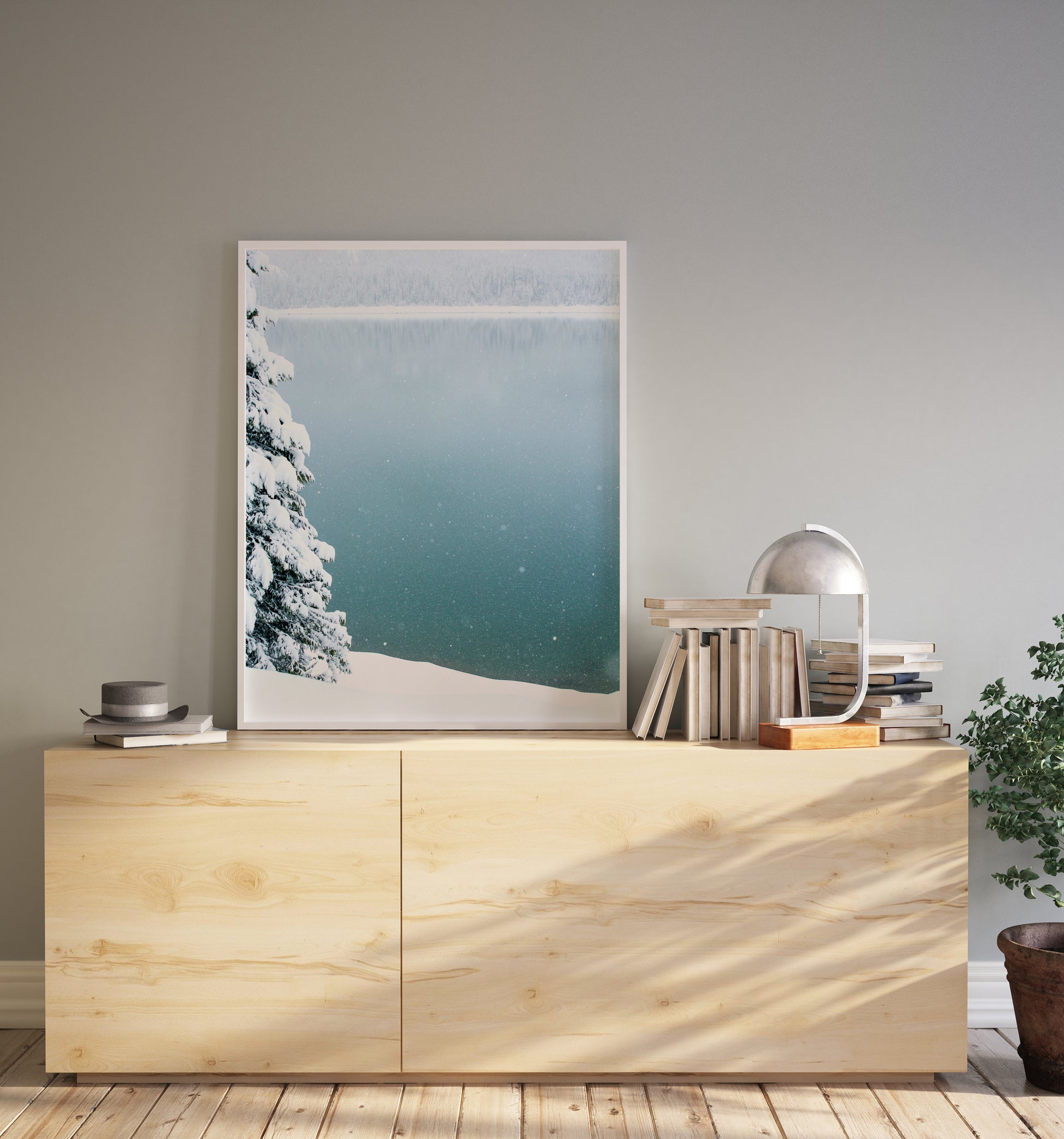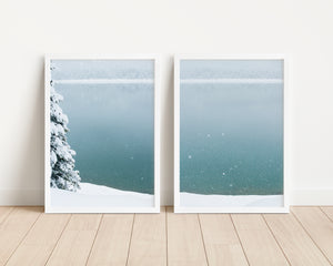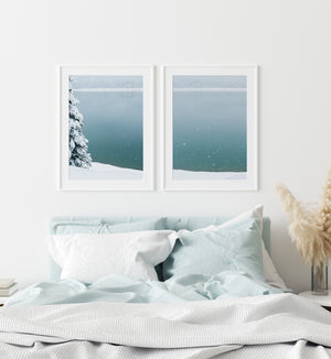 This image can be purchased alone or with it's counterpart 'Snowfall on the lake II'. A beautiful duo, these images perfectly compliment any space you wish to bring calm to, or the excitement of winter.
